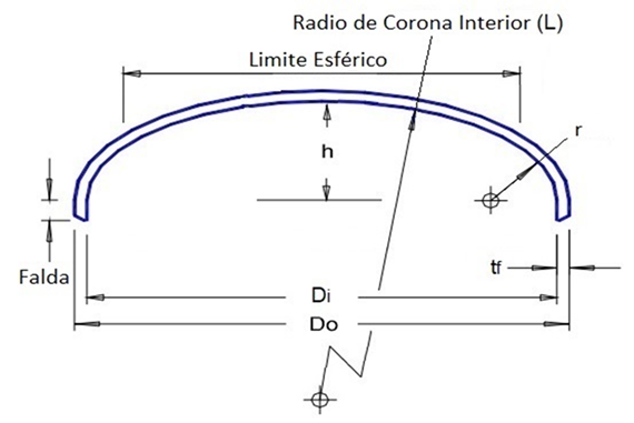 Una aproximación aceptable de un cabezal elipsoidal 2:1 es una con un radio