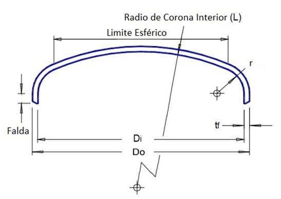 falda del cabezal. El radio interior del nudillo de un cabezal toriesférico